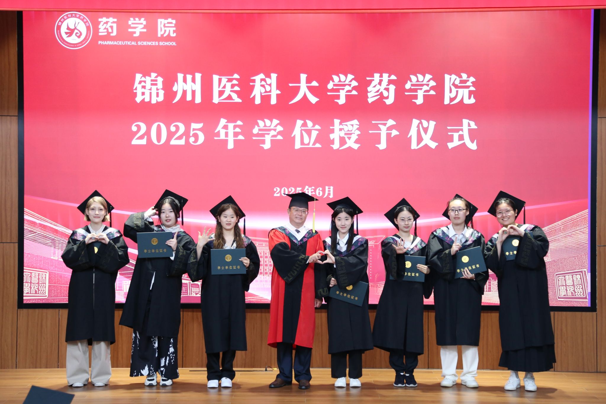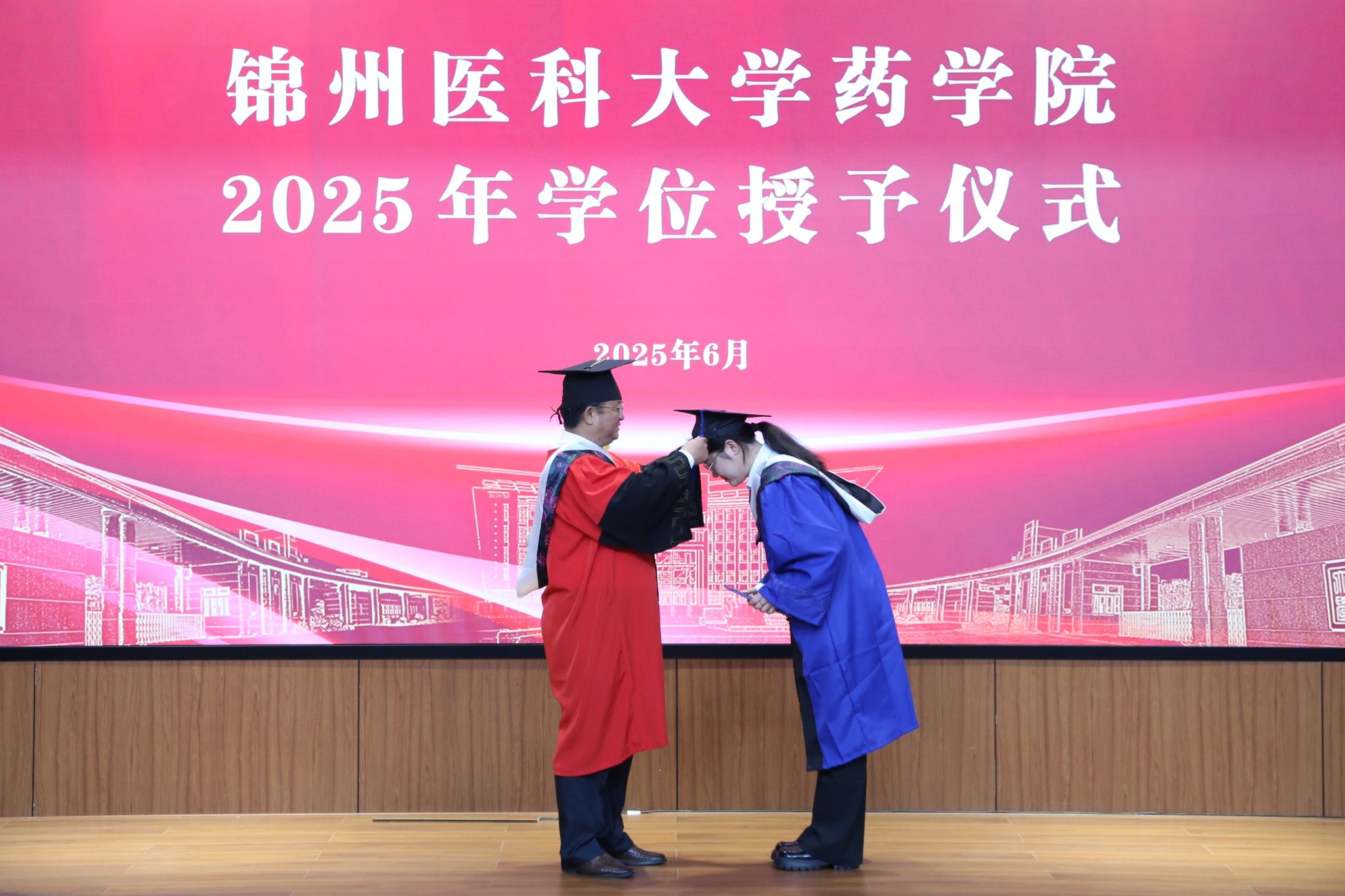 6月25日上午,锦州医科大学药学院2025年学位授予仪式在图书馆学术报告厅隆重举行。学院院长郭斌、党委书记张悦、副院长刘畅、党委副书记王赢、副院长孙玉琦、锦州医科大学学位评定委员会药学分委会成员、教研室(实验教学中心)主任、教师代表、全体毕业生及毕业生家长齐聚一堂,共同见证这一荣耀时刻,为他们的大学生活画上圆满句号,开启人生新征程。学位授予仪式由刘畅主持。