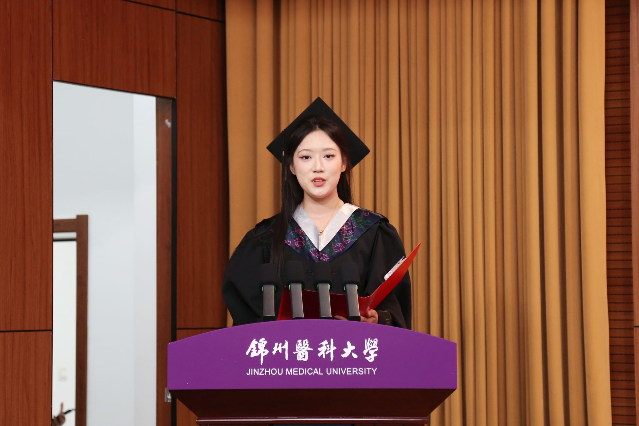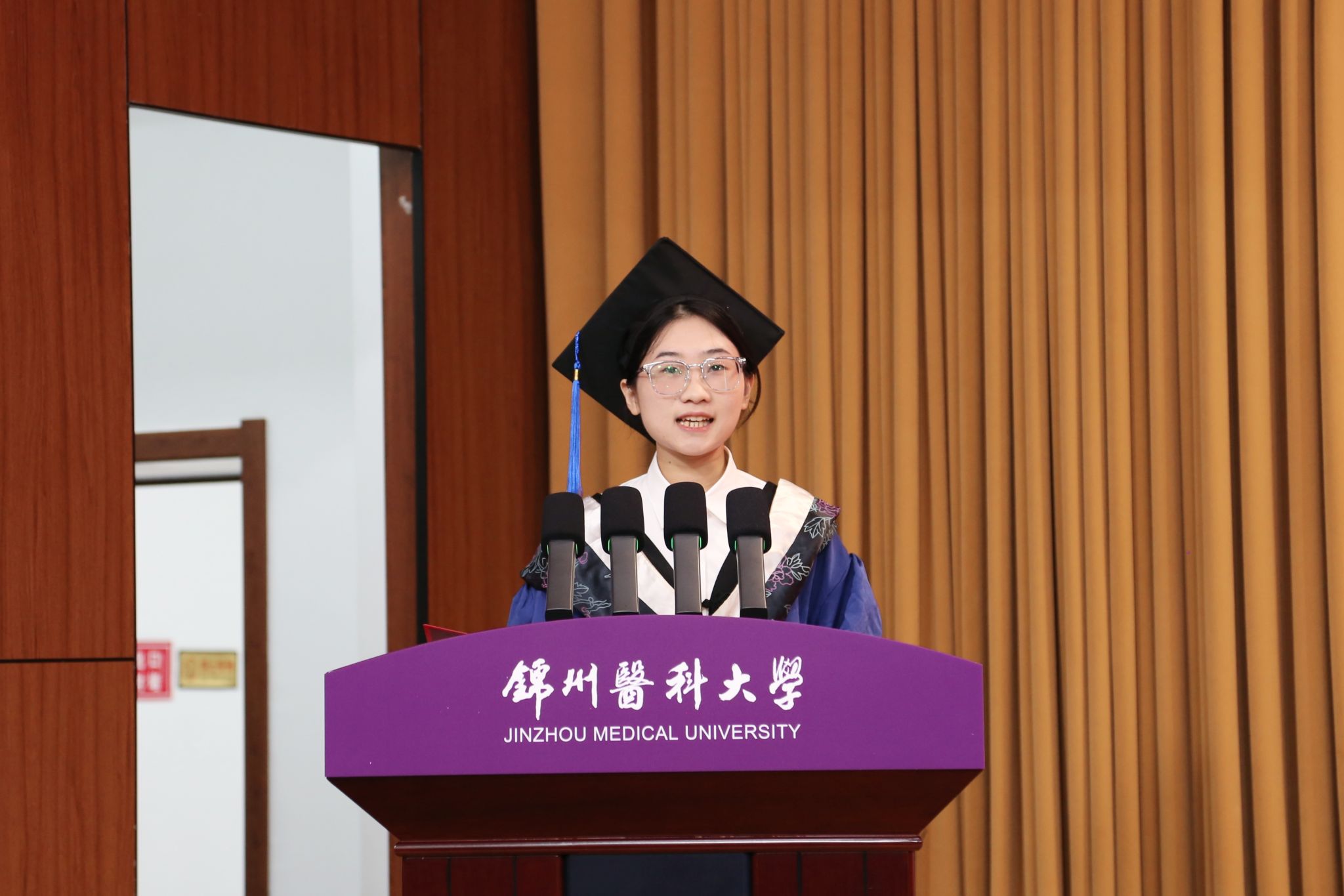 仪式上,本科毕业生代表郑翔誉、硕士毕业生代表李秋玲分别上台发言。她们回顾了在药学院的求学时光,分享了自己在专业学习、科研实践中的成长与收获,表达了对母校、老师和同学们的深深感激之情,并鼓励全体毕业生在未来的道路上坚守初心,勇敢追求梦想,为药学事业贡献自己的力量。