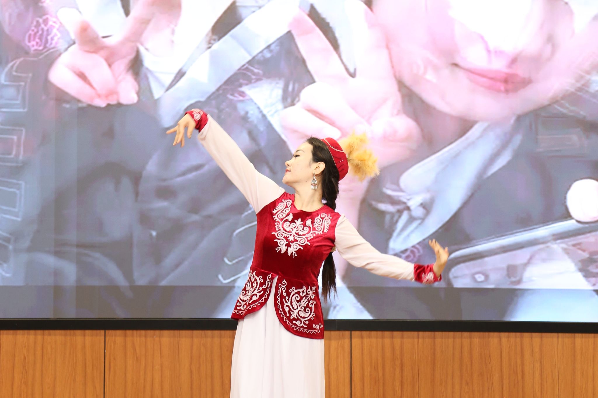 随着赠言环节圆满落幕,辅导员团队精心准备的文艺演出正式登场。在歌曲串烧篇章里,老师们以极具感染力的嗓音重新诠释多首时代金曲,或婉转悠扬,或激昂澎湃,每一段旋律都洋溢着蓬勃朝气与无限热忱。而民族舞蹈表演更是令人眼前一亮,少数民族辅导员身着绚丽服饰,以轻盈飘逸的舞姿展现民族风情,举手投足间尽显优雅韵味,引得现场观众掌声雷动、喝彩不断,瞬间点燃全场氛围,将活动气氛推向最高潮。