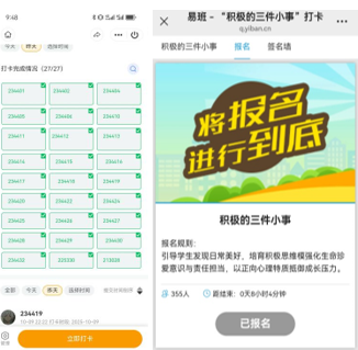 活动于10月9日至10日启动报名,同学们通过QQ群接龙的方式踊跃参与。活动前,组织方发放了专业心理问卷,收集学生初始心理状态数据,为活动效果评估提供科学依据。同时,通过各班心理委员在班级群内广泛转发通知,说明了活动意义、打卡规则及奖励机制,充分调动了学生的参与热情。在10月11日至15日的核心实践阶段,同学们每日在易班平台“积极的三件小事”专区进行打卡。活动期间,同学们用心观察生活,记录下无数温暖瞬间。