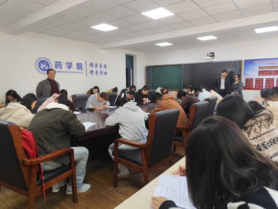 实验室安全培训及准入制度是实验室安全管理工作的重要内容,是保证研究生安全开展科研活动的基础,学院已将实验室安全培训及准入考试纳入到实验室的日常管理工作中,学院高度重视此项工作,药学院院长郭斌,副院长孙玉琦到考试现场进行巡考。