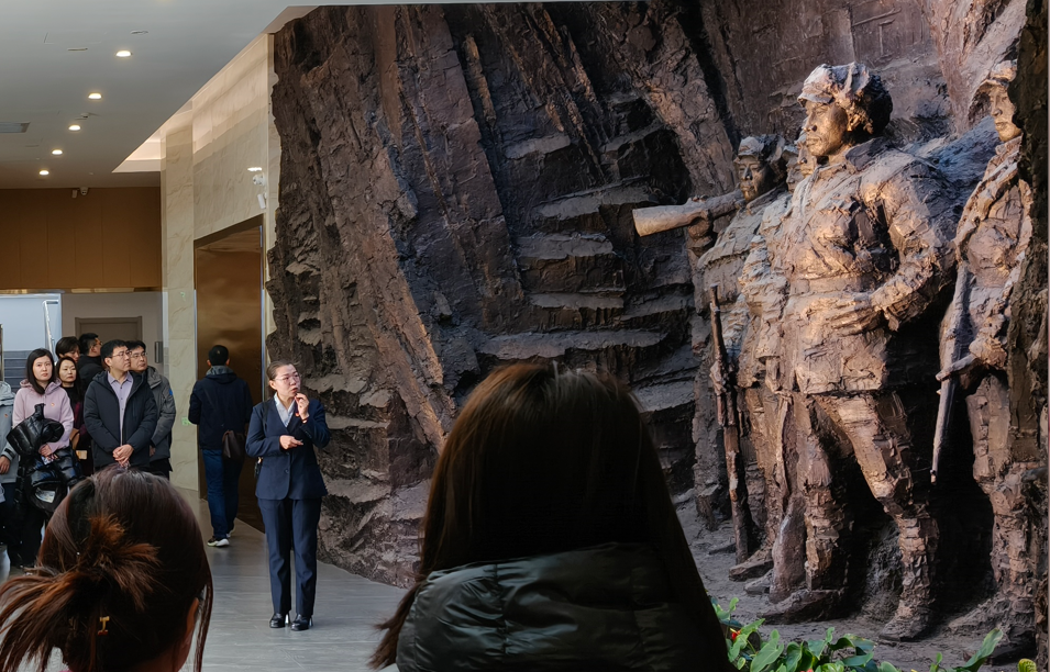 活动现场,在讲解员的带领下,全体入党积极分子依次参观了战斗遗址陈列馆、战壕遗迹、烈士纪念墙等区域。讲解员以翔实的史料、生动的故事,回溯了配水池战斗的峥嵘岁月——战斗中,革命先烈们以“守配水池寸土不让”的钢铁意志,与敌人展开殊死搏斗,用鲜血和生命为后续战斗胜利奠定坚实基础。泛黄的老照片、斑驳的战斗遗物、复原的战斗场景,让每一位参观者都仿佛置身于当年炮火纷飞的战场,深刻体会到革命胜利的来之不易。