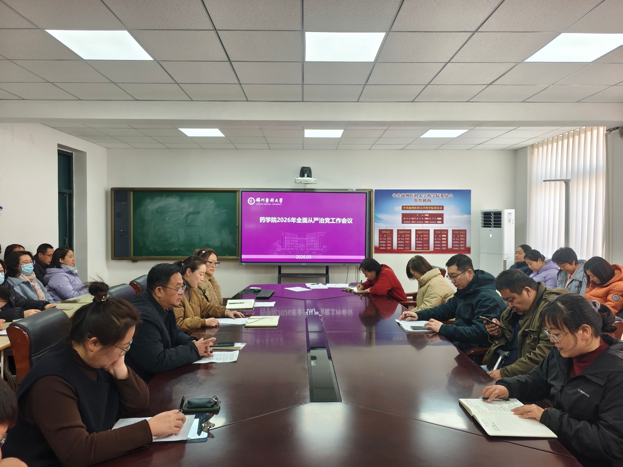 为深入学习贯彻深入学习贯彻贯彻习近平总书记在二十届中央纪委五次全会上的重要讲话和全会精神、国务院第四次廉政工作会议精神、2026年全省教育系统全面从严治党工作视频会议精神和学校2026全面从严治党工作会议精神,严格执行学校党委、纪委关于全面从严治党工作的各项要求,3月18日,药学院召开全面从严治党工作会议,会议明确了学院2026年全面从严治党工作重点,进一步统一思想、凝聚共识,压实管党治党政治责任。学院全体教职工参加会议,会议由学院党委书记张悦主持。